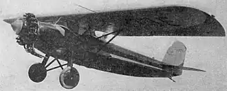 - ^ Horsefall, J.E., ed. (September 1929). "Recent approved type certificates". Aero Digest. Vol. 15, no. 3. New York City: Aeronautical Digest Publishing Corp. p. 220.