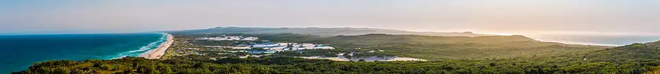 Moreton Island was included in the Greater Brisbane area in 1974.[19] The council initially permitted 60% of the island to potentially be sandmined, however a public outcry led to the council changing the zoning to open space.[5][20][21] The sands on the island contain rutile and zircon. The Queensland Government, led by Joh Bjelke-Petersen supported sandmining on the island and established the Cook Inquiry which produced a report recommending that 94% of the island be banned from mining.[5] Despite this more mining licences were granted until 1984 when the Federal government announced it would decline export licences for the island's mineral sands. In 1989, then Premier of Queensland, Wayne Goss halted mining of the island and compensated the companies involved.