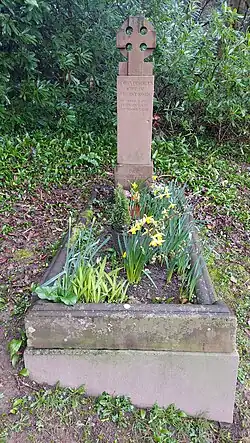 Owen was buried on 11 September in Oystermouth Cemetery, on the outskirts of Swansea, where her gravestone bears the inscription, chosen by Jones from Goethe's Faust: "Das Unbeschreibliche, hier ist's getan".[20]