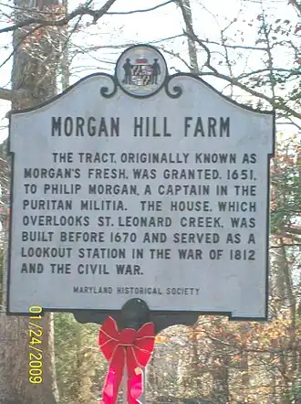 2. ^ J. Richard Rivoire (July 1975). "National Register of Historic Places Registration: Morgan Hill Farm" (PDF). Maryland Historical Trust. Retrieved January 1, 2016.