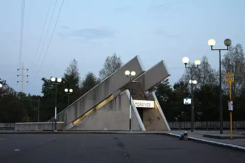Morgnies is a Charleroi Metro station, build at ground level and located in Goutroux (part of the Charleroi municipality), in fare zone 2. The station has only one entrance (on its western end), equipped with escalators and stairs.