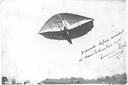 On the day of the exhibition, a glider piloted by sixteen-year old Laurence J. Lesh crashed during its third flight after reaching a maximum altitude of 70 feet (21 m) and travelling a total of about 200 feet (61 m).[8] The glider had been launched by rope tow behind a 1907 Thomas Flyer which had earlier in 1908 won the New York to Paris Race.[8][10] Previous launch attempts had used a tow horse; out of six tries, only two got off the ground, reaching an altitude of about 20 feet (6.1 m).[11]