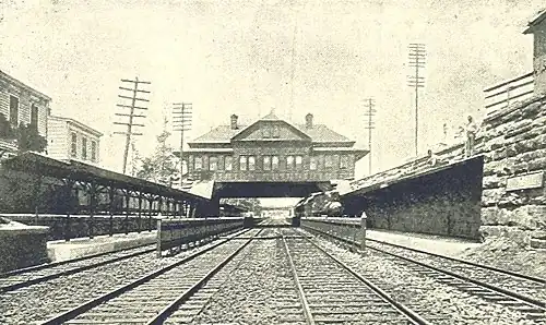 Originally, the station had a brick station house over the tracks on the tracks on the south side of the 168th Street bridge. Prior to the elimination of grade-crossings, the surface station had been located at 167th Street.[5] There was no ticket agent at the station toward the end of its use. In 1964, only 40 daily commuters used the station. The New York Central Railroad was authorized to demolish the station in 1959.[6] The station closed on July 2, 1973 along with several other stations in Penn Central's Metropolitan Region.[7][1]