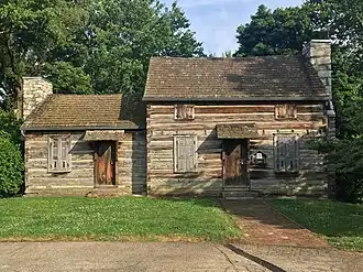 From 1792 to 1793, the community's main street was added onto a major stagecoach route connecting it to Knoxville and Abingdon, Virginia, aiding further early settlement efforts.[25][26] Among these settlers was frontiersman John Crockett, who arrived and settled east of the Morris residence in 1794 with his son, famed pioneer and folk-hero Davy Crockett who was seven years old at the time. John Crockett constructed a log cabin that later served as a tavern, and a hospital treating smallpox during the American Civil War. After the Civil War, the Crockett Tavern was destroyed to prevent further infections of smallpox.[24] The current-day Crockett Tavern Museum sits at the approximate location of the former tavern and is listed on the National Register of Historic Places.[27] John's son, Davy resided in Morristown until 1809, when he relocated to Middle Tennessee to go into Tennessee state politics.[24]