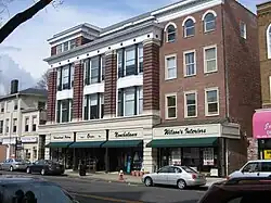 In the 1880s, the town's residents were primarily farmers. The small amount of stores in the Morristown Green town center were only open during the evening to accommodate farmers who did not leave their work during the daytime. There were only a few stores in town, including Adams & Fairchild grocers and P. H. Hoffman & Son clothiers, both located in the Arnold's Tavern on the Morristown Green.[63]