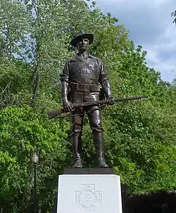 Morristown's Burnham Park has a statue, "Father of the American Revolution", depicting Thomas Paine, who wrote Common Sense in 1776, which urged a complete break from British rule and helped inspire the American Revolution. The bronze statue by sculptor Georg J. Lober shows Paine in 1776 using a drum as a table during the withdrawal of the army across New Jersey composing Crisis 1. He wrote, "These are the times that try men's souls..." The statue was dedicated on July 4, 1950.[49]