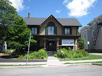Morrisville Public Library is a historic library building located at Morrisville in Madison County, New York. It was built about 1850 and is a 2+1⁄2-story frame picturesque cottage with Gothic Revival–style detailing. It became a library in December 1903 with 760 volumes on its shelves. It was given by Susanna Phelps Gage who wanted to give her family home to the village for something meaningful when her parents Henry and Mary Phelps died.[2]