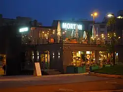 In May 2018 the first Morton restaurant was opened in Jyväskylä, along the Rantaraitti trail.[7] The other restaurants in the chain were located in Kuopio, Varkaus and Äänekoski. The Jyväskylä restaurant had 50 spaces, of which half were indoors. The lot was rented for a period of five years. The restaurant, built from two cargo containers, was 20 metres long and the chain's first restaurant where customers could eat indoors.[3]