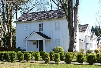 The house was prefabricated in Boston with Maine lumber and shipped to Oregon via Cape Horn. At the time of its erection in the 1850s it was therefore an unusually refined residence for frontier-era Oregon. The two story wood-frame house was originally about 40 feet (12 m) deep. Subsequent additions have more than doubled its size.[2]