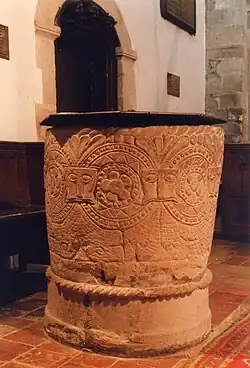 The origins of the priory at Morville lie in the earlier parish church. There was a collegiate church or minster at Morville, dedicated to St Gregory and served by eight canons, in the reign of Edward the Confessor[4] and conceivably earlier. The canons were supported by eight hides, perhaps divided between them in something like a prebendal structure. After the Norman Conquest the church fell within the territories of Roger de Montgomery, the Earl of Shrewsbury, and he granted some of the lands to his own chaplains. He gave the entire church to Shrewsbury Abbey some time between its foundation in 1083 and the inauguration of monastic life in 1087. He prescribed that the prebends should revert to the abbey as the canons died or otherwise vacated them.[5] Domesday Book in 1086 found Morville a substantial settlement with 25 villein households, 7 smallholders and 2 slaves.[2] Five hides were now in the hands of the abbey. Earl Roger's chaplains still held three hides between them, with five men holding the land from them.[6] It is the only church in Alnodestreu specifically mentioned by Domesday, so it seems that the entire hundred constituted a single parish.[7]