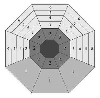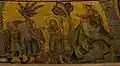 The last part of the interior to have mosaics added were the women's galleries between approximately 1300 and 1330.[1] These show angels and saints and their style agrees with Giovanni Villani's written evidence, which dates their completion to 1330 and probably dates the start of work to around 1300–1315. There are no art historical studies specifically on the mosaics of the women's galleries, though Venturi briefly notes that they were produced after 1300. The vault has a central motif of a starry sky, symbolic of the Empyrean, surrounded by angels with unclear attributes, possibly another set of angelic hierarchies.