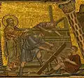 Most art historians now attribute the compositions to a number of Tuscan artists but their realisation to mosaicists from Venice or the eastern Mediterranean. Stylistic analogies with painted works enable links with the best 13th century masters, their collaborators, Giotto and the 'proto-Giottists' such as the so-called Last Master of the Baptistery identified by Roberto Longhi.[2] The works have been under almost constant restoration from the late 14th century onwards, with particularly notable schemes occurring in 1402, 1481, 1483–1499 (overseen by Alesso Baldovinetti, who was made "official restorer of the mosaic decoration"), 1781–1782 (general cleaning), 1821–1823 (dealing with serious damage in the area of Stories of Noah) and 1898–1907 (massive reintegration).[2]
