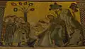 | Joseph Given Command over Egypt | It differs from the preceding scenes by a richer palette of colours, though this could be due to a different mosaicist, whilst its lively composition in almost pathetic tones may attribute them to the Master of the Maddalena (Pesenti, 1978–1979). | |