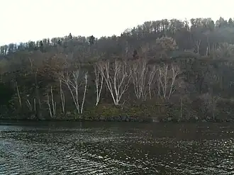 Moss Island is an island in Little Falls, New York, located between the Mohawk River and the New York State Barge Canal. It is composed of an igneous intrusion of syenite, and became an island when canal locks were built so boats could avoid the 40-foot (12 m) falls. It is known for its large 40–50-foot (12–15 m) deep potholes[2] as well as being popular with local rock climbers. It was declared a National Natural Landmark in 1976.[1] Efforts by the local community to turn Moss Island into a New York State Park were begun in 2008.[3]