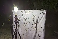 Mothing is frequently done with the aid of attractants, such as sugary solutions painted in tree trunks or using light.[1][5] There are also moth traps, which are designed specifically for mothing, with do-it-yourself and commercial versions.[1]