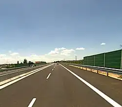 The motorways in Albania (Albanian: Autostrada or Autostradë) are the controlled-access highway system in Albania predominantly under the supervision of the Ministry of Infrastructure and Energy. The motorways are characterised as roads with at least two lanes in each driving direction including an emergency lane and a maximum allowed speed limit of not less than 110 kilometres per hour (68 mph).[1]