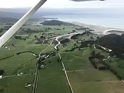 Motupipi River has its source adjacent to State Highway 60 just south of the Tākaka urban area. It flows northwest to reach Golden Bay to the north of Motupipi.[2] Powell Creek flows into the river from its true right near Scott Road in Tākaka. Slightly downstream from there, the Dry River also joins from the true right.[3]