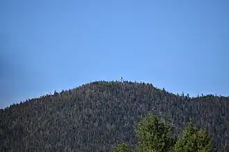 The first fire lookout structure built on the mountain was a wooden tower that was built by the Conservation Commission in 1912. In 1917, the Conservation Commission replaced it with a 47-foot-tall (14 m) steel Aermotor LS40 tower. The tower was ceased fire lookout operations at the end of the 1971 season.[3]