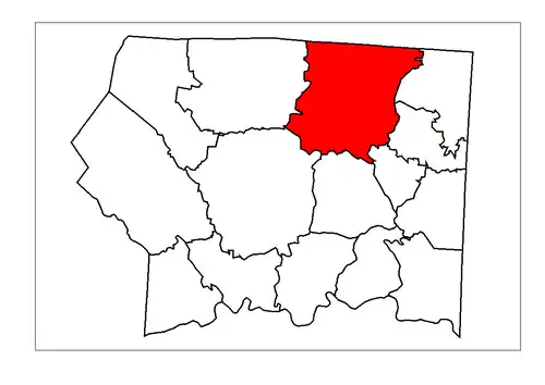 Geographically, Mount Airy Township occupies 43.1 square miles (112 km2) in northern Surry County, with its northern border being with the state of Virginia. Mount Airy Township is the most populated township of Surry County, accounting for nearly 35% of the total county population. There are multiple unincorporated communities located here, including Bannertown, Boones Hill, Flat Rock, Franklin, Holly Springs, Salem, Sheltontown, Slate Mountain, Toast, White Plains, and White Sulphur Springs.