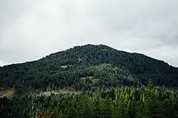 Mount Benson[2] (Halkomelem: Tatch-to-lan, Taitookton; Chinook jargon: Wakesiah[3][4]) is a mountain located on Vancouver Island, British Columbia located 9 km (5.6 mi) west of Nanaimo. At one time, there was road access to the peak as there was a fire lookout at the summit. Today, the road is closed to vehicles but the mountain has become popular with local hikers as it has great views of the Strait of Georgia, the mainland Coast Mountains of British Columbia, the Nanaimo River valley, and the Vancouver Island Ranges, including Mount Arrowsmith.[1]