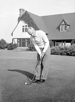 Frank Glass near the cottage of the Mount Bruno Golf Club, in 1946