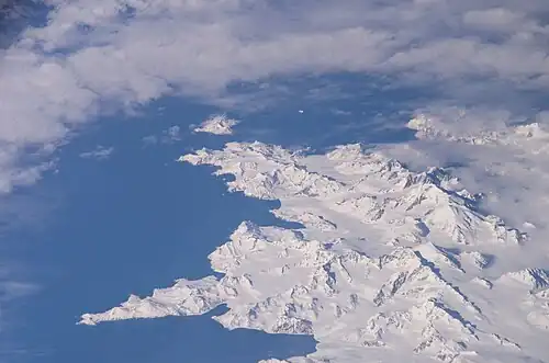 Mount Carse (right) viewed from ISS.