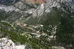 In 1996, plans were announced for the Mount Charleston Golf Resort to be built in the area, as part of a project known as Alpine Village.[46][47] The golf course opened in July 1997, next to the Mount Charleston Hotel. Later that year, the golf course was put up for sale. A hotel had been planned to accompany the course, but it was never built.[48] Mount Charleston residents opposed plans for a shopping center that would also accompany the project.[49][50] The shopping center was eventually rejected by the Clark County Commission.[51][52]