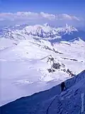 The mountain was named in 1898 by J. Norman Collie after the Columbia River.[1] The river itself was named after the American ship Columbia Rediviva captained by Robert Gray, who first ventured over a dangerous sandbar and explored the lower reaches of the river in 1792.[6] Mount Columbia was first ascended in 1902 by James Outram, guided by Christian Kaufmann. The first winter ascent of Columbia was completed on March 14, 1944, by about thirty men led by Major Douglas Groff[7] of Winnipeg, during the course of a three-day patrol on the Icefield, using snow holes as sleeping quarters.