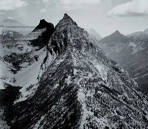 Mount Doody (8,644–8,684 feet (2,635–2,647 m)) is located in the Lewis Range, Glacier National Park in the U.S. state of Montana.[4] Mount Doody is astride the same ridgeline as the Cloudcroft Peaks which are to the immediate northeast. Dan Doody was one of the first six rangers at Glacier National Park.[5] Doody patrolled the Middle Fork drainages, using his own homestead as a headquarters. Later, because of his recognized hunting abilities, Doody became a park hunter skilled at removing "undesirable" wildlife from the area.[6]
