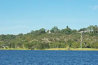 Geologically, Mount Eliza is part of the Spearwood Dunal system which were formed during the Pleistocene glacial and interglacial periods around 40,000 years ago. This system is identifiable by its yellow brown sands over Tamala Limestone.[6] Mount Eliza's soil is of the Karrakatta soil association, formed from calcareous beach sand containing 50–70% calcium carbonate. The leaching of this carbonate over time has created the limestone bases which have been exposed as the Swan River has receded. A drilling survey in 1971 found that both the escarpment and tableland area had a diverse nature of sand grain, depth and overall fertility. This diversity of sand sheets is explained by the operation of Aeolian deposition and erosion over extended periods of time.[7] Underlying sand loam sheets, with perched water tables are considered highly important for vegetation growth and subsequent stabilisation. The Botanic Gardens and Parks Authority manages risk associated with geotechnical instability, and between 1995 and 2020 has made two geotechnical inspections with no major concerns.[8]