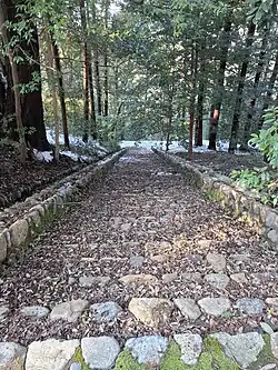 In 1935, a shrine building complex was destroyed by the police during the Second Oomoto Incident. The shrine building complex was never rebuilt.[3]