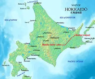 ![]() Map of Hokkaido showing location of Mount Kamui and Lake Mashū. | |