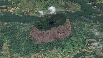 Mount Lico is an inselberg mountain in the Alto Molocue District of Zambezia Province in northern Mozambique, most notable for its old-growth rainforest and its lack of penetration by humans. Mount Lico is approximately 1,100 metres (3,600 feet) above sea level but is distinctive in having sheer rock walls of up to 700 metres (2,300 feet) above the surrounding countryside that have all but prevented human intrusion. The forest on top, within a volcanic crater, covers only about 30 hectares (74 acres).