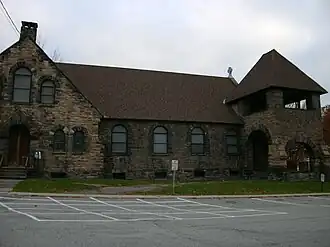 Mount Moriah Presbyterian Church, also known as First Presbyterian Church, is a historic Presbyterian church located at Church and S. Main Sts., NW corner, Town of Moriah in Port Henry, Essex County, New York. It was built in 1888 and is a distinguished example of Richardsonian Romanesque architecture. It is rectangular in plan and constructed of dark sandstone. It features an unusual two story, hipped roof, combination porte cochere and bell tower.[2]