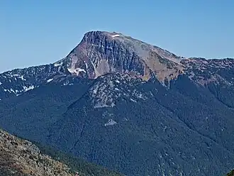 Mount Outram is a prominent 2,461-metre (8,074-foot) mountain summit located in the Canadian Cascades of southwestern British Columbia, Canada. It is the fourth-highest summit in the Hozameen Range, and highest point of the Manson Ridge subrange.[4] It is situated 23 km (14 mi) southeast of Hope, and 14.5 km (9 mi) north-northeast of Silvertip Mountain, its nearest higher peak.[4] Precipitation runoff from the peak drains into tributaries of the Coquihalla and Skagit Rivers. The mountain was known as Beaver Mountain as early as 1930 before being named for Sir James Outram, 1st Baronet, and being officially adopted October 6, 1936, by the Geographical Names Board of Canada.[3][2][5] The first ascent of the mountain was made August 12, 1924, by Fred Perry, Herbert Selwood, Leslie Ford, and T.L. Thacker.[3]