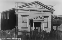 The Masonic Hall at Mt Perry is a simple vernacular structure with an ornate classically inspired facade and was constructed around 1904 when Mt Perry was important as a copper mining town.[1]