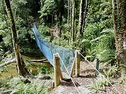 Blue Bill Stream bridge, where the Bell Track leaves the valleyHihikiwi summit and Ōpārau valley to Kawhia Harbour
