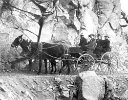 The Mount Wilson Toll Road (1891–1936) is a historic roadway which ascended Mount Wilson via a vehicular passable road from the base of the foothills in Altadena. It was accessible from Pasadena via Santa Anita Avenue (nowadays the north–south portion of Altadena Drive) which drove right to the front porch of the toll house. The road is still accessible to non-motorized traffic (hikers, bicyclists, and horses) by way of Eaton Canyon (either from the Nature Center entrance, or an access gate on Pinecrest Drive, just off Altadena Drive in Altadena). Segments of it have been closed at various times due to landslides. A 2005 landslide destroyed 50 yards of the road, but it has since been rebuilt and reopened.[1]