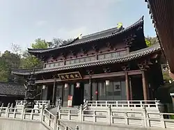 With 3,000 years of history, Mount Zhao enjoys flourishing and profound culture.[1][2] Over 100 celerities indifferent dynasties paid a visit and left the descendants with over 150 poems and paintings, and some 70 ancient steles and architectural relics. In the Northern Song dynasty (960–1127), Mi Fu, a famous calligrapher and painter, painted The temple in the mountain, which was known as one scene of Eight Views of Xiaoxiang in ancient China and East Asia.[1][2][3] In the Qing dynasty (1644–1911), Wang Fuzhi and Wang Kaiyun used to climb up the mountain.