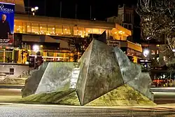 Mountain Fountain was designed to accommodate the possibility that people might climb on it.[3] Over time, its angled planes and banks made it a favourite location for skateboarders, and by the late 1980s Aotea Square had become a central hub for skateboarding culture in Auckland.[9][16] With the decline in popularity of skateboarding after the 1970s, most of Auckland's best skateboard bowls disappeared, making Aotea Square a popular destination for skateboarders.[9] New Zealand skateboarders Levi Hawken[17][18] and Chey Ataria[16] have commented on the sculpture's iconic status and formative influence within Auckland's skateboarding community. Alex Dyer in New Zealand Skateboarder Annual called Aotea Square "the most iconic New Zealand skate spot."[19]