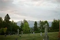 Mountain View Cemetery is the only cemetery in the City of Vancouver, British Columbia. Opened in 1886, it is located west of Fraser Street between 31st and 43rd Avenues. It is owned and operated by the City of Vancouver and occupies 0.43 square kilometres (110 acres) of land, containing more than 100,000 grave sites and over 150,000 interred remains. The first interment took place on February 26, 1887. The first interment was supposed to happen in January 1887 but poor weather, a new road, and a broken wagon wheel resulted in the intended first occupant being temporarily buried outside the cemetery. His body was relocated to inside the cemetery months later.