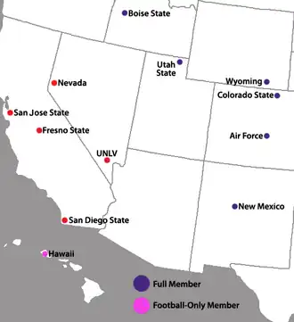1. ^ "Mountain West Announces Elimination of Football Divisions in 2023" (Press release). Mountain West Conference. May 20, 2022. Retrieved May 20, 2022.