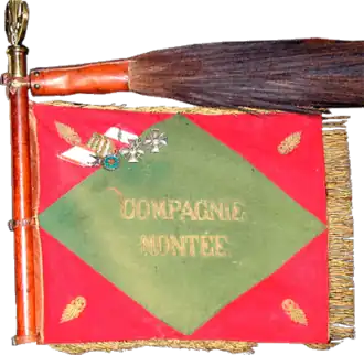 In 1913, the 3rd Mounted Company of the 2nd Foreign Regiment became the Mounted Company of Morocco (French: Compagnie Montée du Maroc), forming a corps.[1] During the war, the corps was in charge of maintaining the security of communication between Fès and Taza (French: Taza). Assigned to the 3rd Foreign Regiment on 15 November 1920, the corps was reassigned to 2e REI on 1 January 1922, and reassumed the original designation.