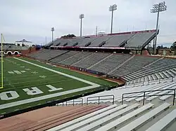 Veterans Memorial Stadium at Larry Blakeney Field is a stadium in Troy, Alabama. It is primarily used for American football, and is the home field of the Troy University Trojans. The seating capacity is 30,470. The stadium was originally built in 1950, and has regularly been expanded, renovated and improved since then. The stadium was named in honor of the college students and local residents who gave their lives during World War II. The field received its name from retired head coach Larry Blakeney, the coach with the most wins in Troy history.