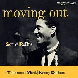 Moving Out is an album by jazz saxophonist Sonny Rollins. This was his second for Prestige Records, featuring Kenny Dorham, Elmo Hope, Percy Heath, and Art Blakey, and one track with Thelonious Monk, Tommy Potter, and Art Taylor.[1] The first 4 tracks had originally appeared on as the 10-inch LP Sonny Rollins Quintet Featuring Kenny Dorham (PrLP 186), and the final track had appeared on the 10-inch LP Sonny Rollins and Thelonious Monk (PrLP 190).[2]