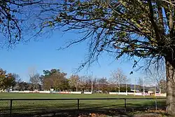 The current Moyhu Recreation Reserve on the Moyhu - Greta Road, was established in 1940 and originally had a dirt bicycle track around the perimeter of the sports oval, which also had a turf cricket wicket, which was used by the Moyhu Cricket Club, when they competed in the Wangaratta and District Cricket Association.[7]