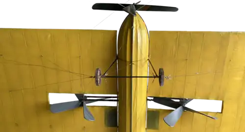 Mozhaysky's airplane (Russian: Самолёт Можайского) was an experimental Russian airplane designed and built by a naval officer Alexander Mozhaysky (also transliterated as Mozhayskiy, Mozhayski, Mozhaiski and Mozhaisky).[1] Powered by two steam engines, the monoplane design reputedly made a powered take off assisted by the use of a ramp, flying between 20 and 30 m (66–98 ft) near Krasnoye Selo, Russia in 1884.