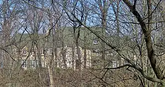 The Fred L. Mandel Jr. House was built on five lots (and part of a sixth) in the Highland Park Syndicate Subdivision in Highland Park, Illinois. This area was platted on March 29, 1926, when it was owned by the Bard family. Francis N. Bard built a bridge across a ravine in September 1927, allowing development on the other side. Some time in the next eight years, the property was sold to their neighbors, the Buckley family. On July 30, 1937, Fred L. Mandel Jr. purchased these lots from Buckley. He contracted his father-in-law, architect David Saul Klafter, and contractor Joseph T. Carp to design a French Eclectic house for approximately $127,900.[2][3]