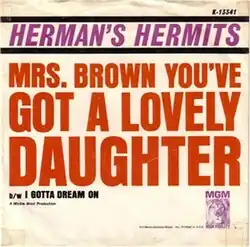 "Mrs. Brown, You've Got a Lovely Daughter" is a popular song written by British actor, screenwriter and songwriter Trevor Peacock.[2] It was originally sung by actor Tom Courtenay in The Lads, an ITV Television Playhouse play of 1963, and released as a single on UK Decca.[3]