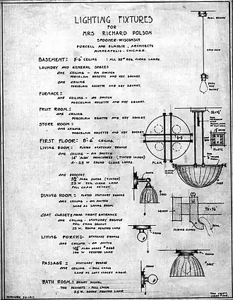 ![]() Lighting fixtures drawings and specifications by Purcell & Elmslie | |